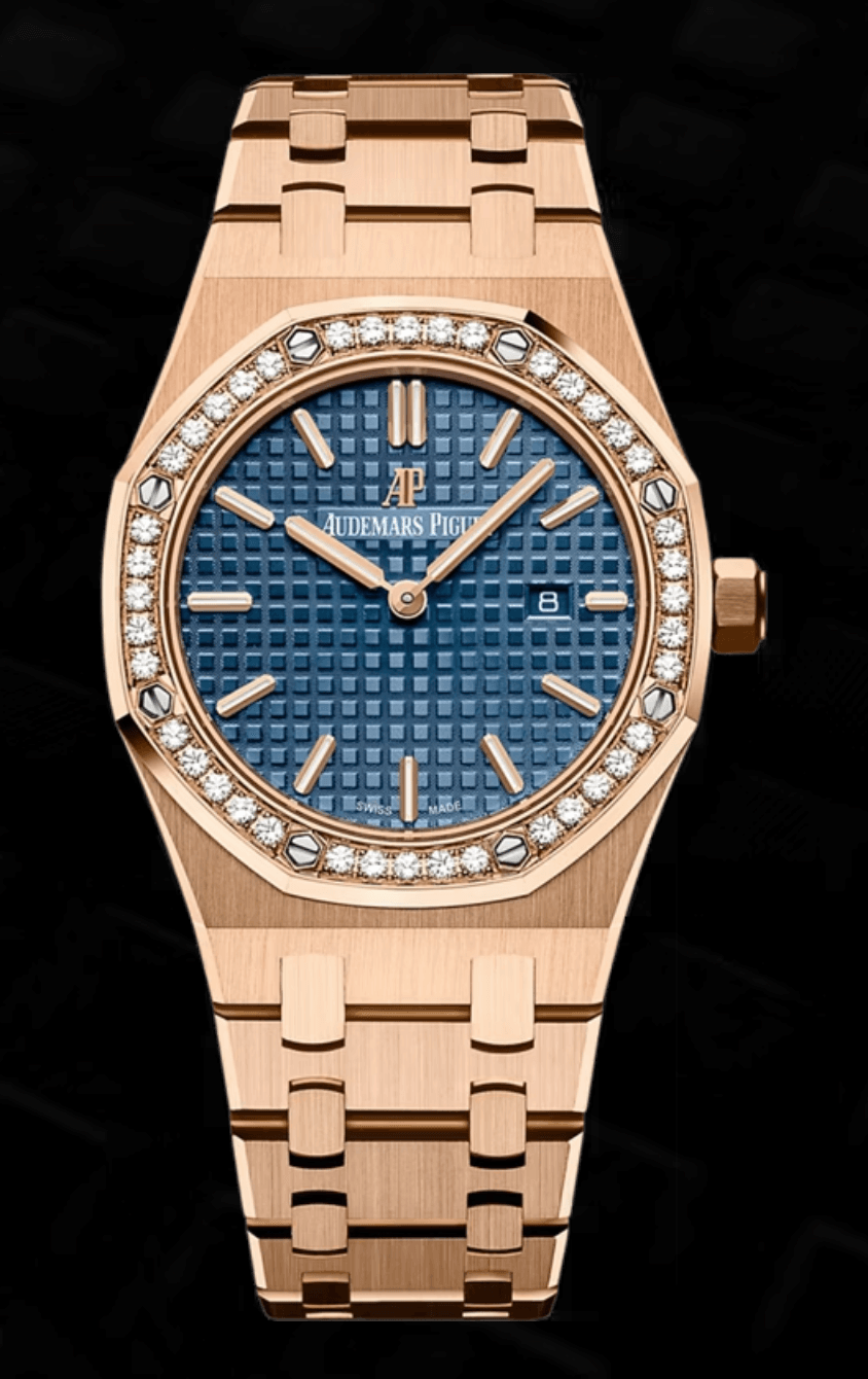Audemars Piguet Royal Oak 33mm Blue “Grande Tapisserie” Dial Diamond Bezel Full Rose Gold