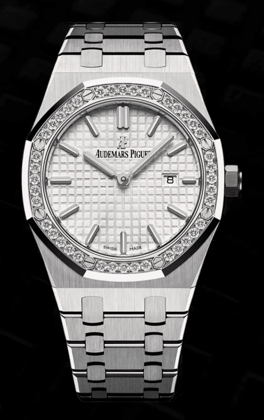 Audemars Piguet Royal Oak 33mm Silver-Toned “Grande Tapisserie” Dial Diamond Bezel Stainless Steel