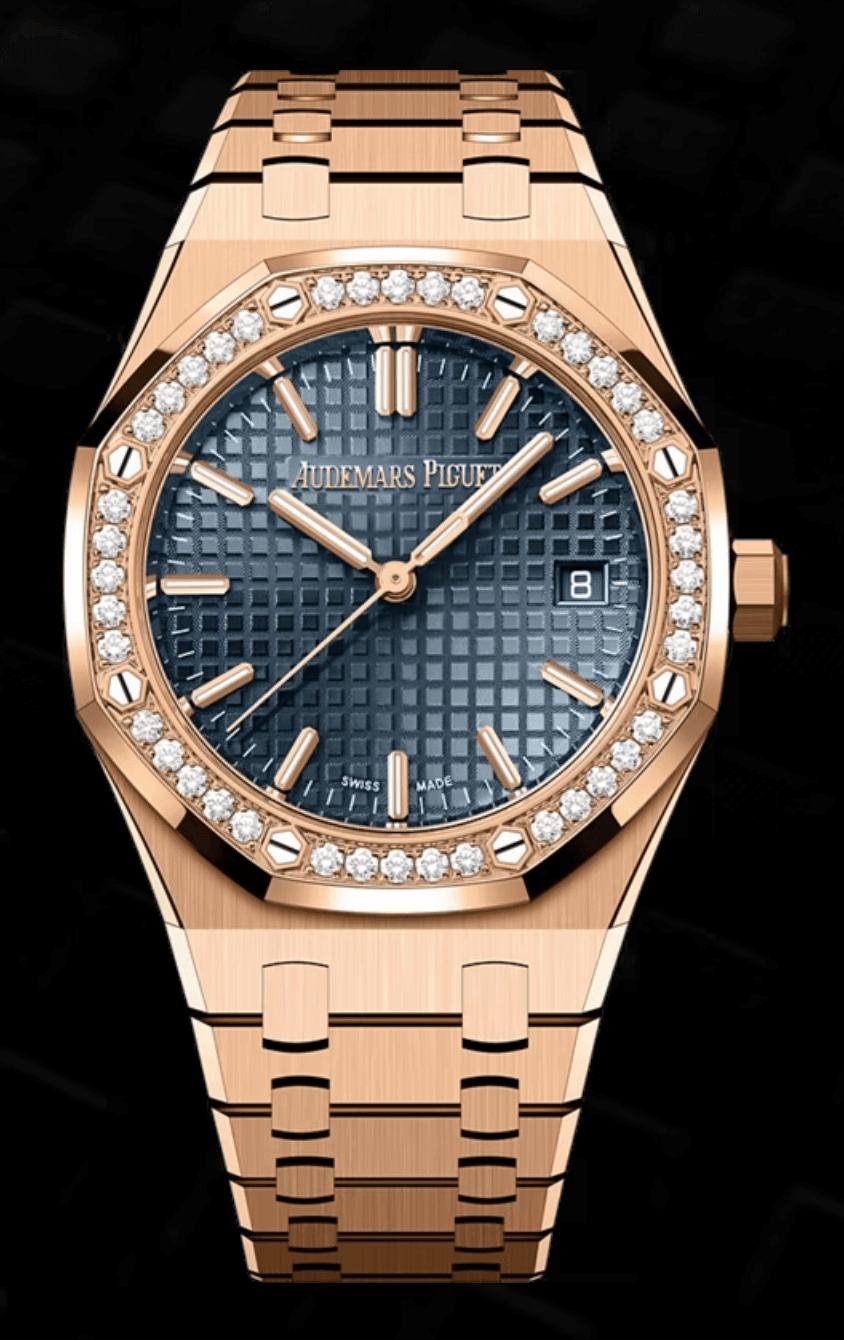 Audemars Piguet Royal Oak 34mm Blue “Grande Tapisserie” Dial Diamond Bezel Full Rose Gold