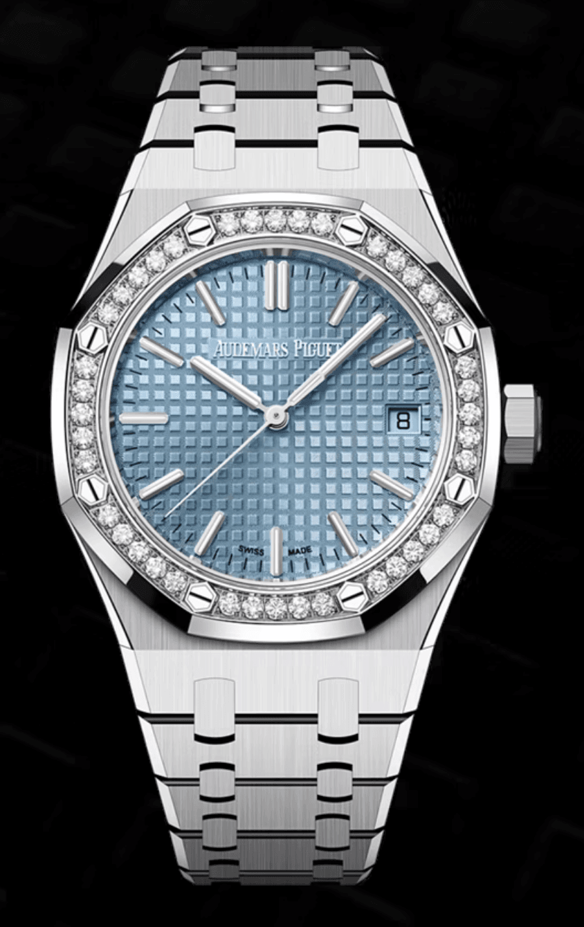 Audemars Piguet Royal Oak 37mm Light Blue “Grande Tapisserie” Dial Diamond Bezel Stainless Steel