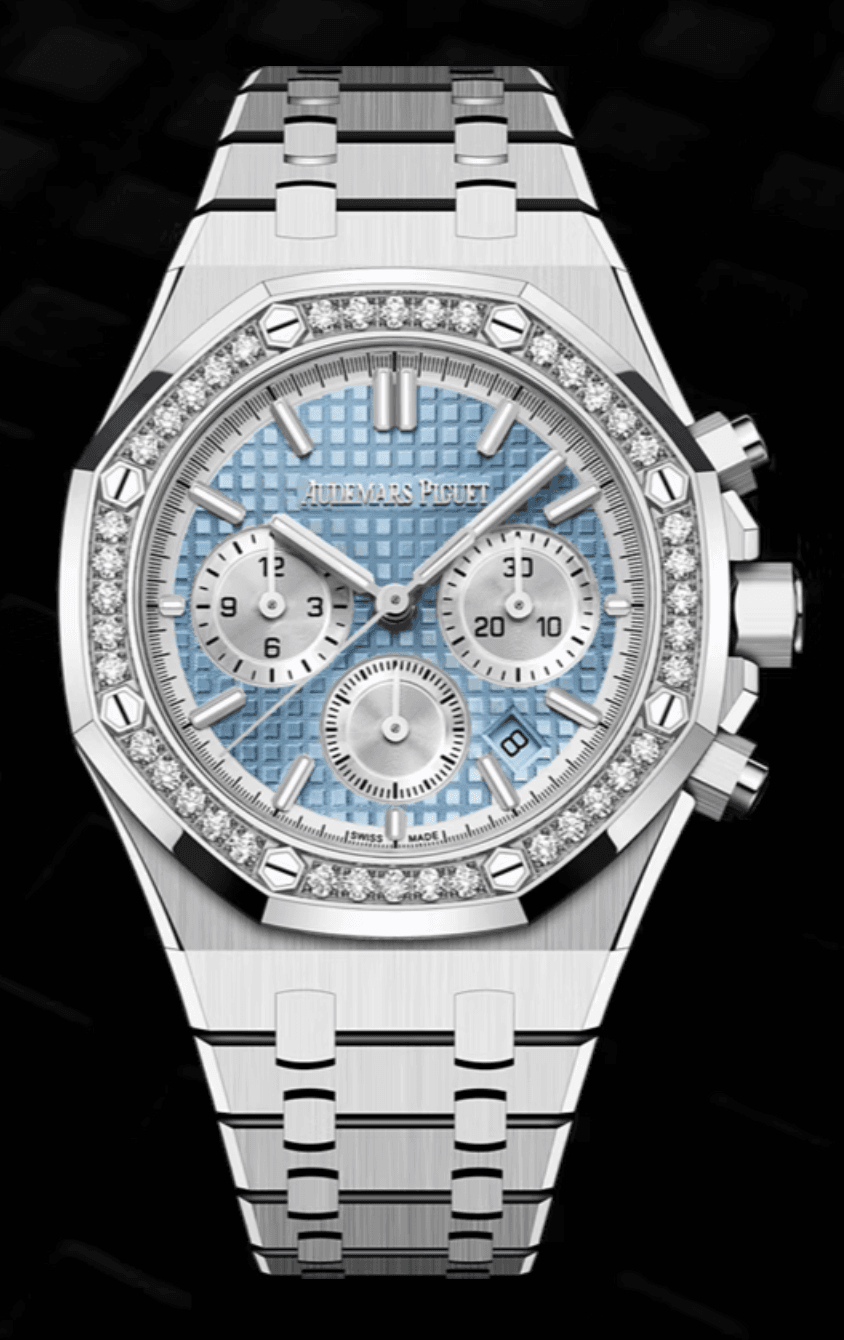 Audemars Piguet Royal Oak Chronograph 38mm Light Blue “Grande Tapisserie” Dial Diamond Bezel Stainless Steel