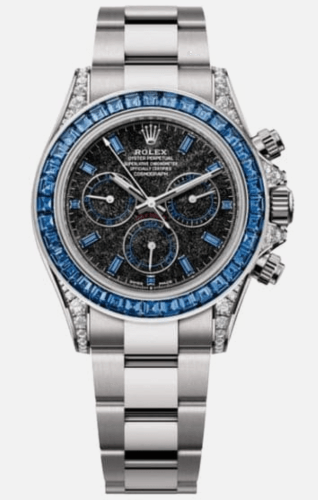 Off-Catalogue Rolex Daytona Obsidian Dial with Sapphire Baguette Markers Sapphire Bezel 40mm Full White Gold