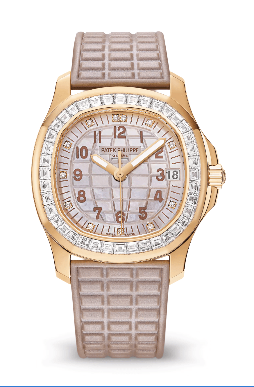 Patek Philippe Aquanaut 35mm Mother of Pearl Diamond Dial Baguette Bezel Rose Gold