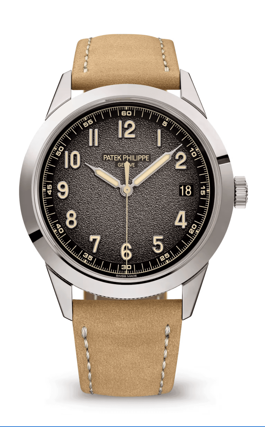 Patek Philippe Calatrava 40mm Charcoal Grey Black-Gradient Dial White Gold Beige Calfskin Strap