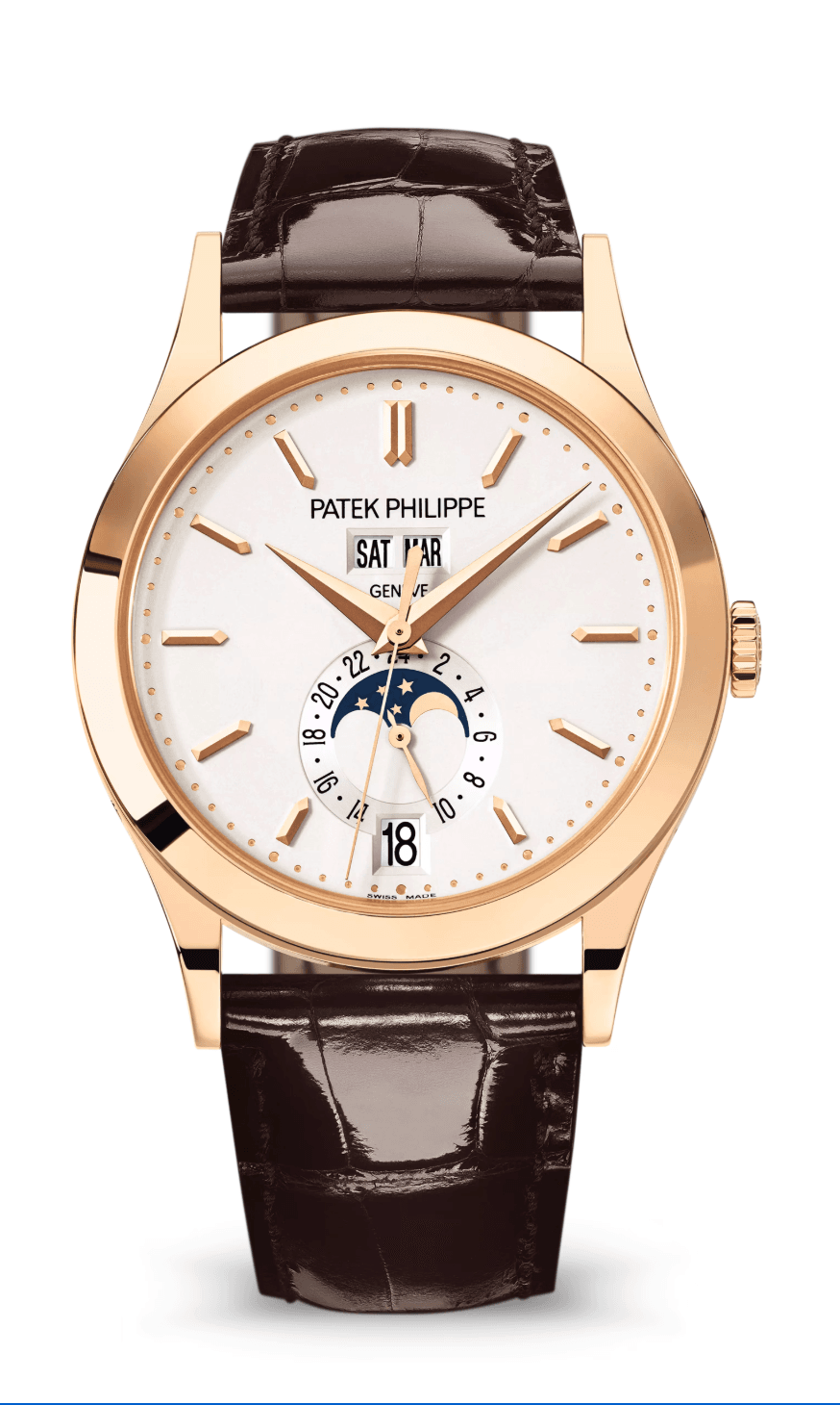 Patek Philippe Complications Annual Calendar 39mm Opaline Blue Dial Rose Gold Chocolate Brown Alligator Strap