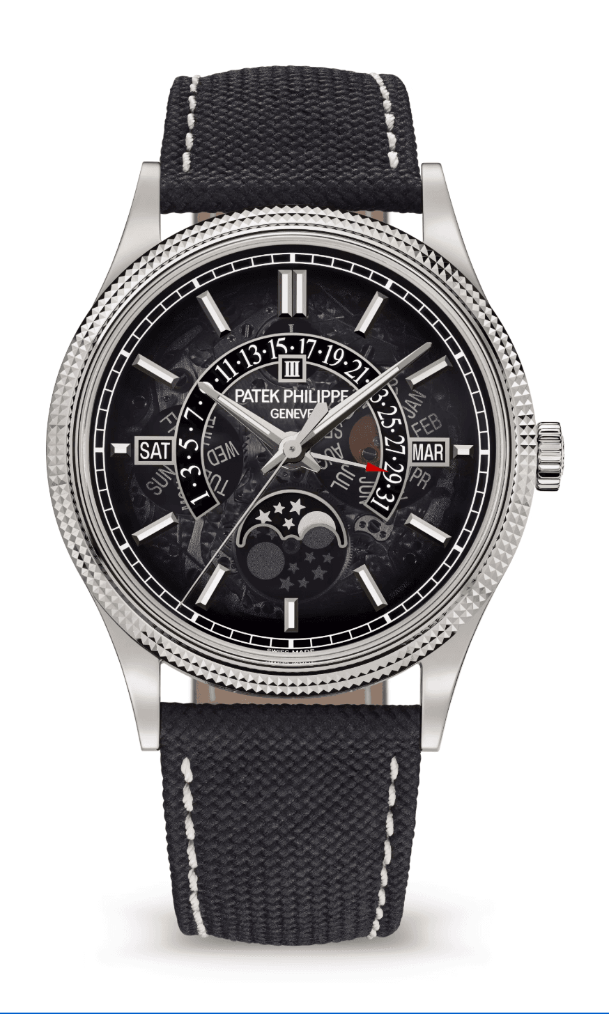 Patek Philippe Grand Complications Perpetual Calendar 39mm Grey Dial White Gold Black Composite Fabric Strap