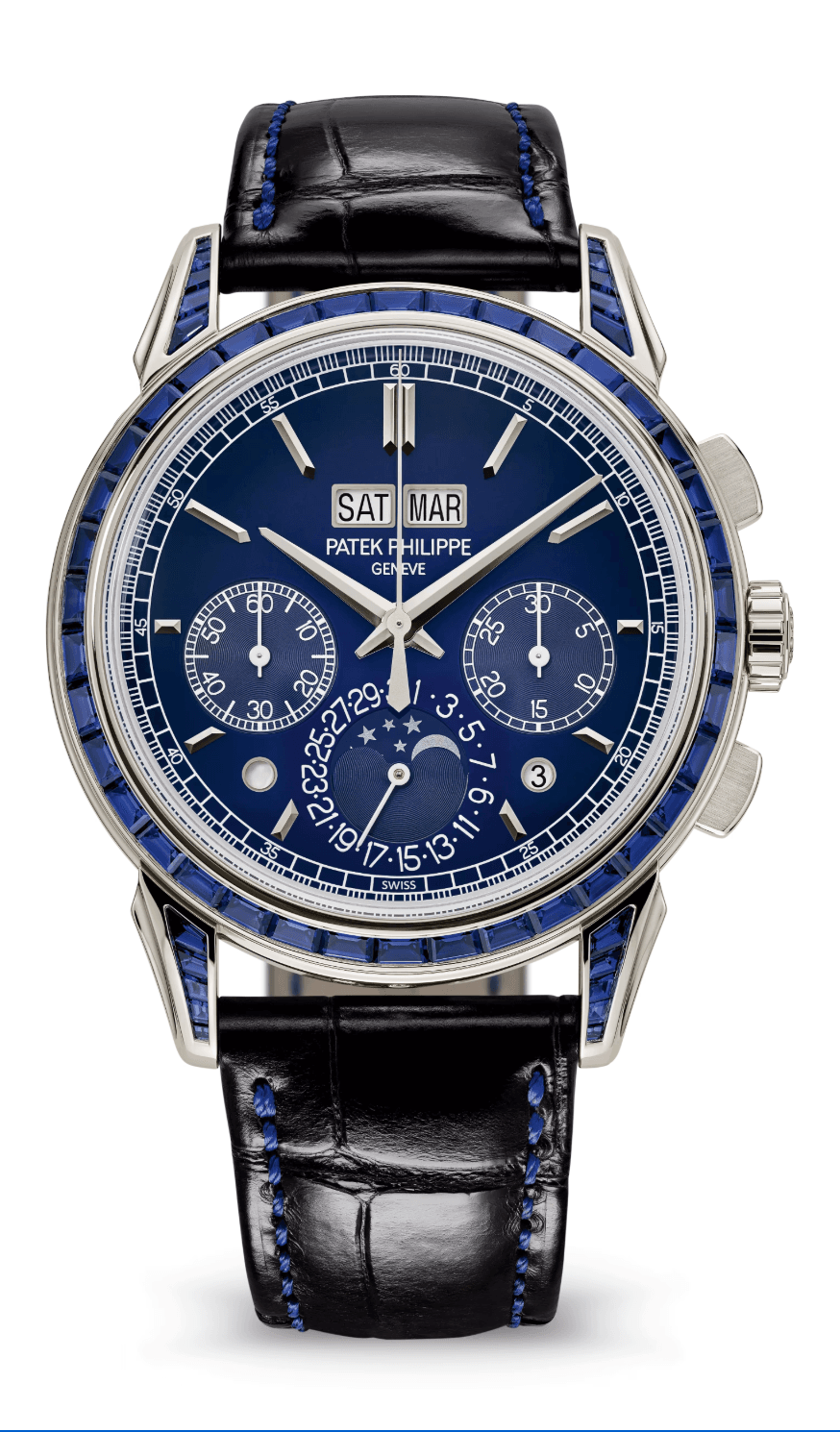 Patek Philippe Grand Complications Perpetual Calendar Chronograph 41mm Lacquered Blue Black Gradient Dial Sapphire Bezel Platinum Black Alligator Strap