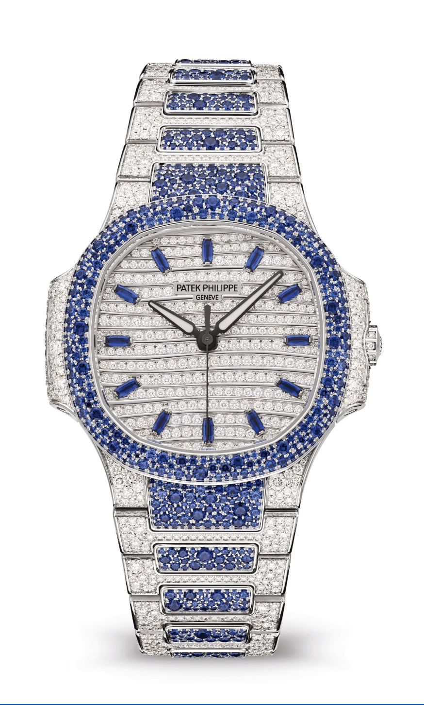Patek Philippe Nautilus 35mm Pave Diamond Sapphire Full White Gold