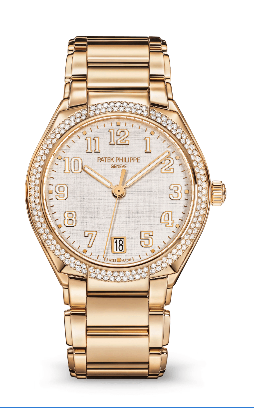 Patek Philippe Twenty-4 36mm Silver Satin-Finished Dial Double Diamond Bezel Full Rose Gold
