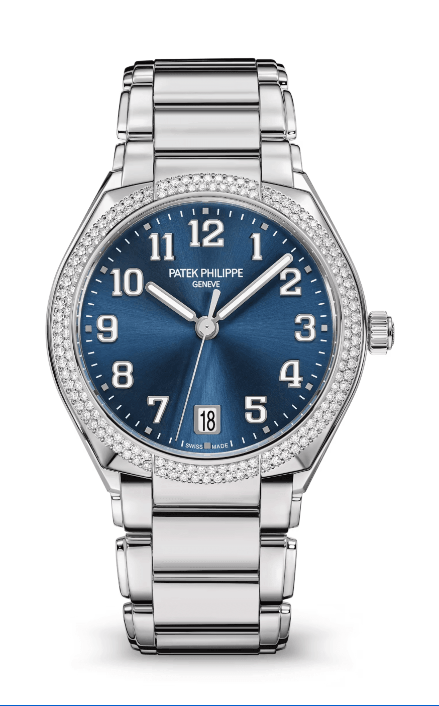 Patek Philippe Twenty-4 36mm Sunburst Blue Dial Double Diamond Bezel Stainless Steel
