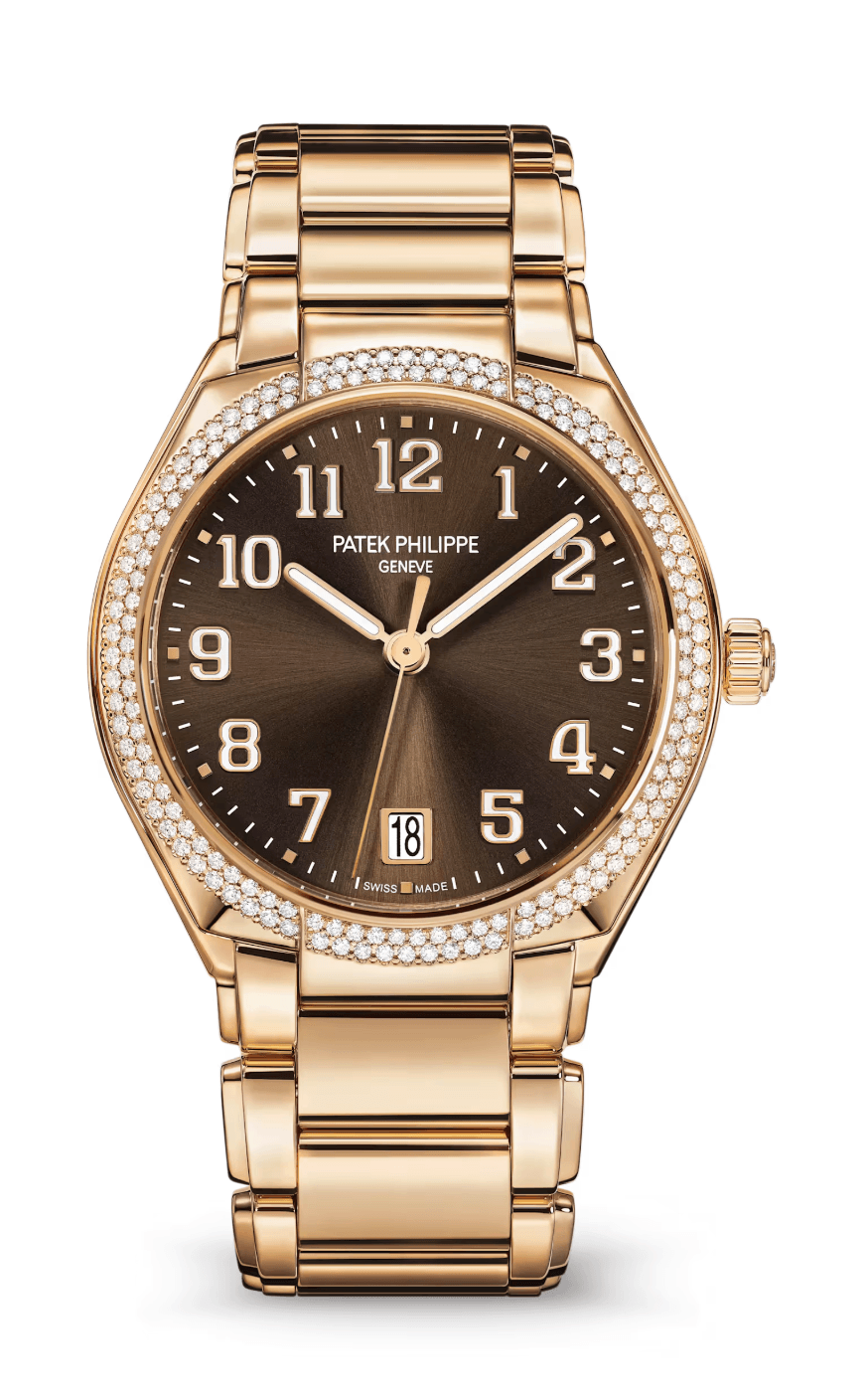 Patek Philippe Twenty-4 36mm Sunburst Brown Dial Double Diamond Bezel Full Rose Gold