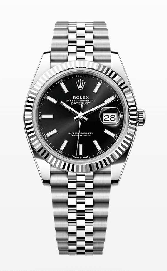 Rolex Datejust Black Dial Fluted Bezel Jubilee Bracelet 41mm Stainless Steel
