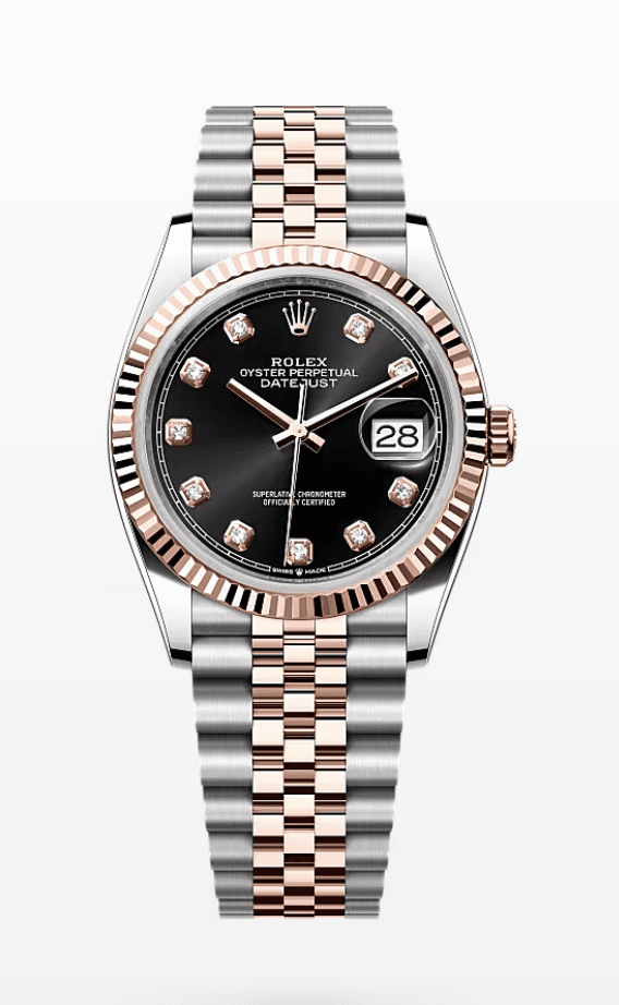 Rolex Datejust Black Dial with Diamond Markers Fluted Bezel Jubilee Bracelet 36mm Two-Tone Everose Gold and Stainless Steel