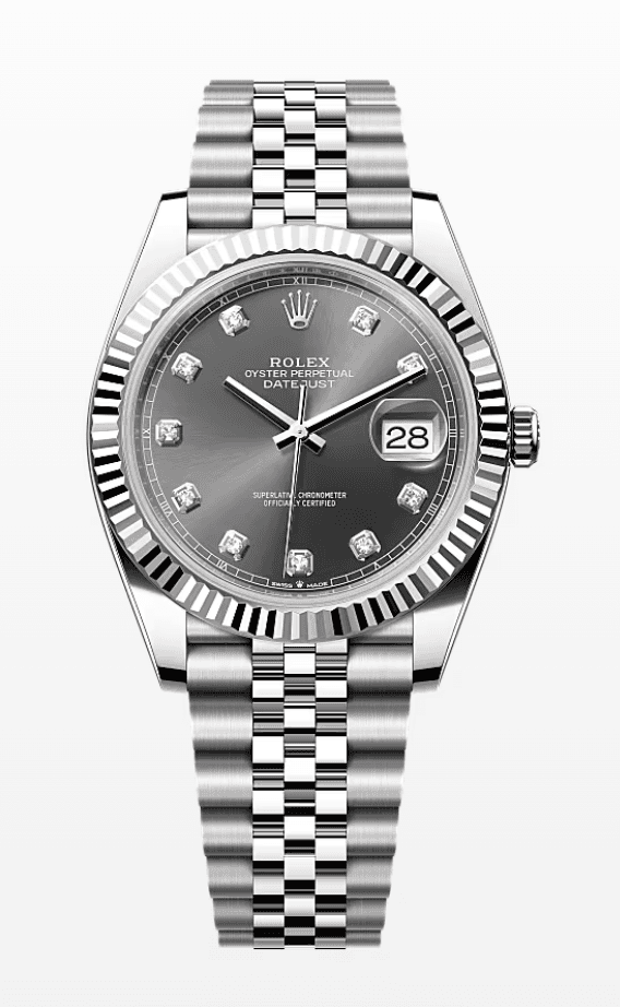 Rolex Datejust Grey Dial with Diamond Markers Fluted Bezel Jubilee Bracelet 41mm Stainless Steel