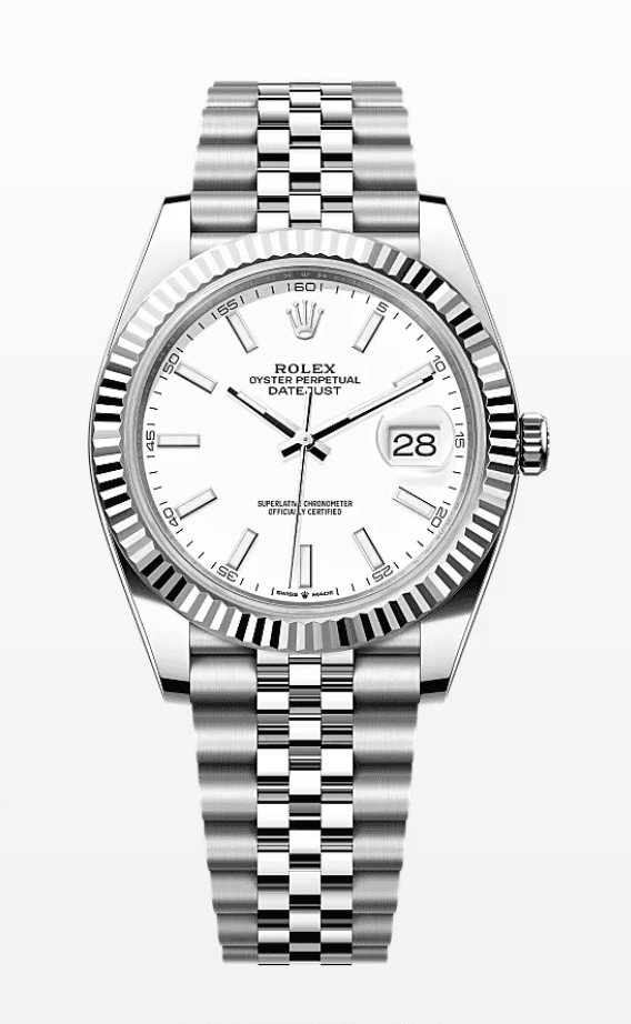 Rolex Datejust White Dial Fluted Bezel Jubilee Bracelet 41mm Stainless Steel