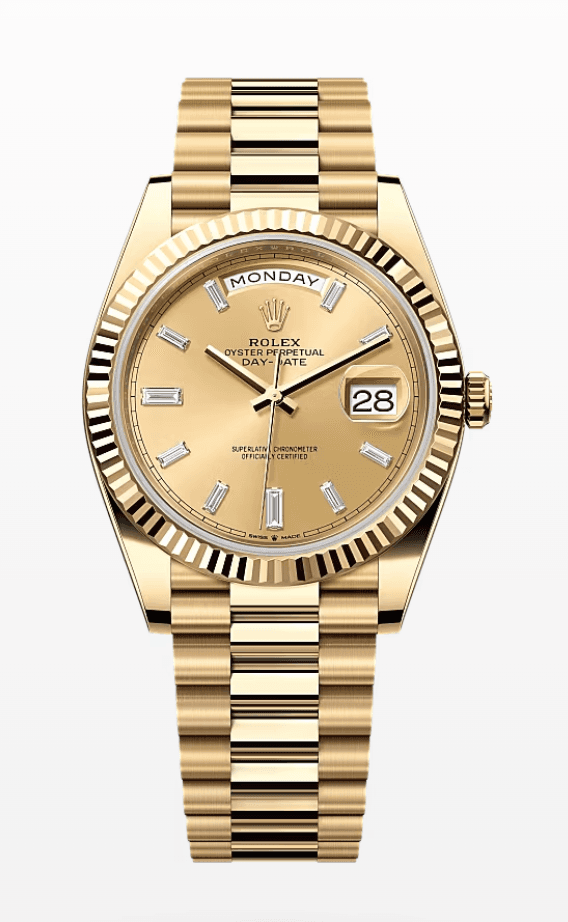 Rolex Daydate Champagne Dial with Baguette Markers 40mm Full Yellow Gold