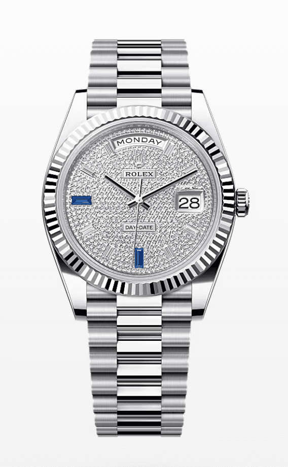 Rolex Daydate Diamond Pave Dial with Baguette and Sapphire Markers 40mm Platinum