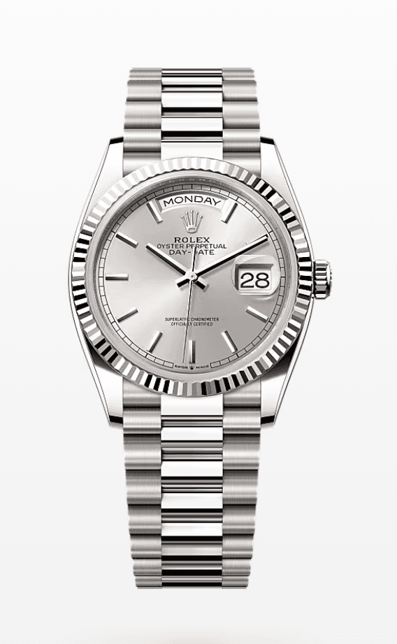 Rolex Daydate Silver Dial 36mm Full White Gold