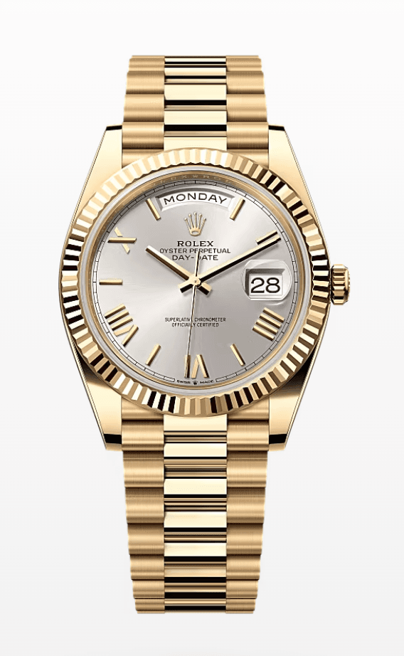 Rolex Daydate Silver Roman Dial 40mm Full Yellow Gold