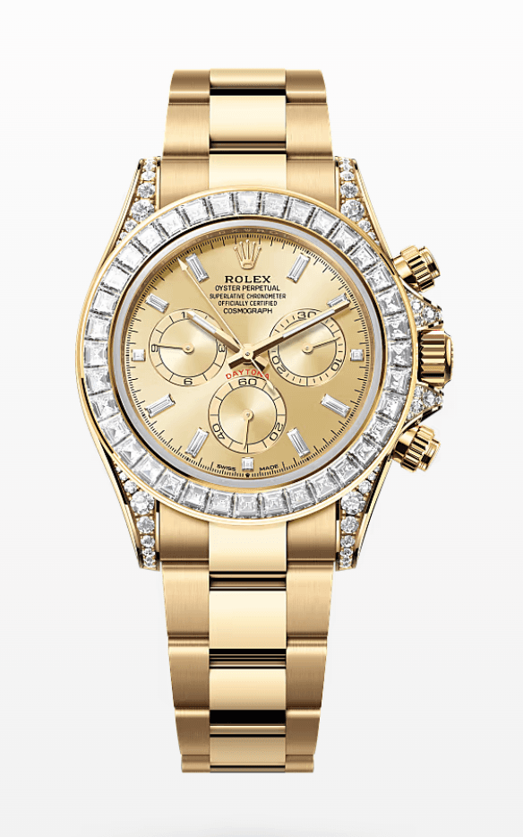 Rolex Daytona Champagne Dial with Baguette Markers and Bezel 40mm Yellow Gold