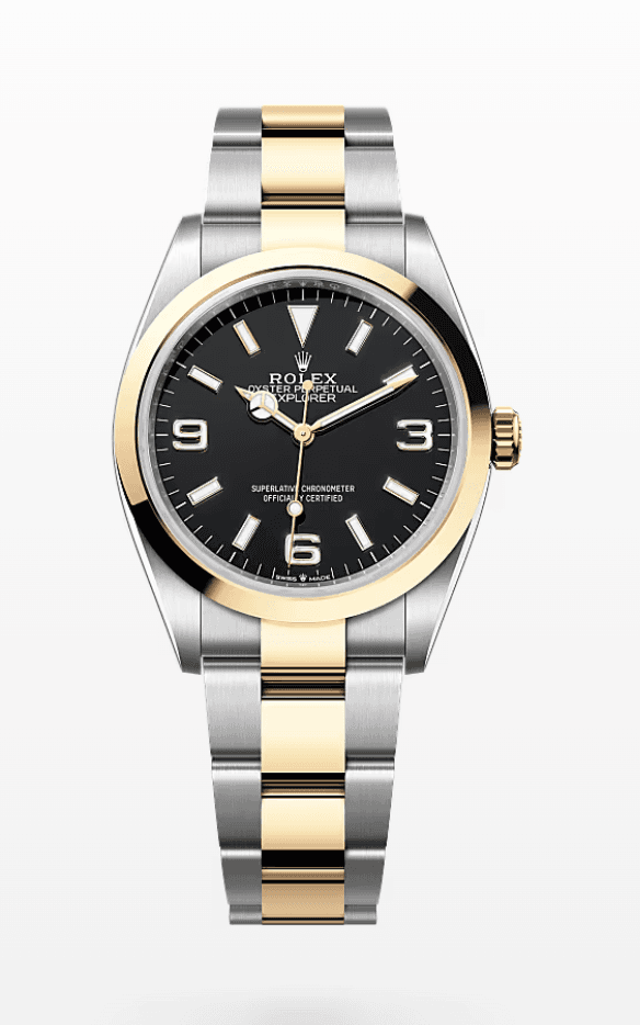 Rolex Explorer Black Dial 36mm Two-Tone Yellow Gold and Stainless Steel
