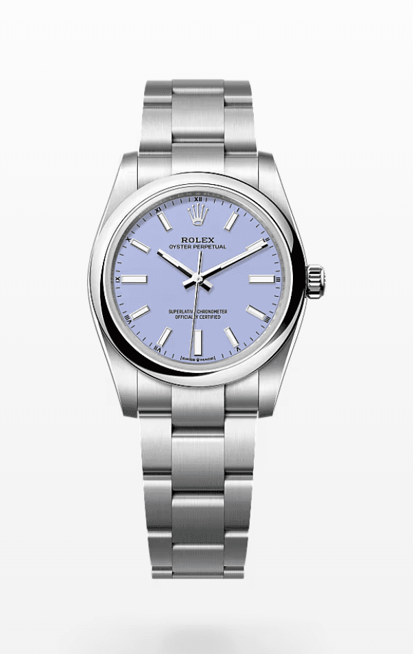 Rolex Oyster Perpetual Lavender Dial 34mm Stainless Steel